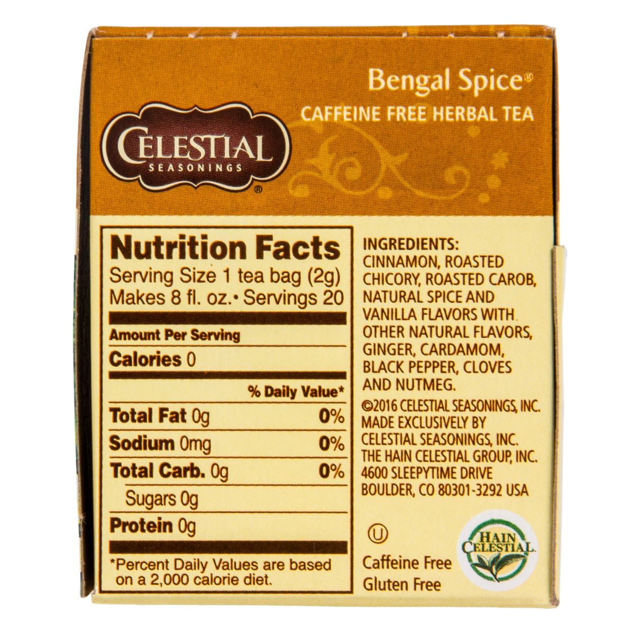 Celestial Seasonings Herbal Tea Bengal Spice 20 Count Pack of 6 Bengal Spice 20 Count Pack of 6 49 out of 5 stars. 0 fat 0 carbs 0 protein. Now I know that many of those things have a.